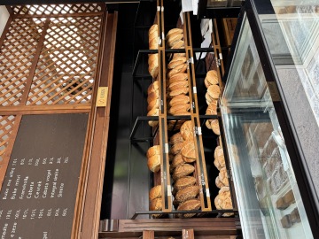 Necelých 80metrů od apartmánu se nachází místní pekárna s kavárnou, kde je každý den připravený výběr pečiva i dortů.